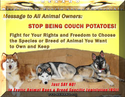 Download them free of charge for use in your traveling educational or entertaining exhibit, pet store, veterinary office, schools, etc...to educate the public and legislators about the animal rights (AR) threat